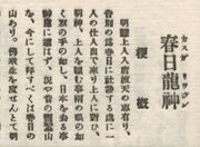 | 17:25, 7 September 2015 | Taisho-text.jpg (file) | 51 KB | LordAmeth | Detail from a 1925 Noh ''utaebon'', giving a summary of the play ''Kasuga ryujin''. Book in private collection of User:LordAmeth. | |