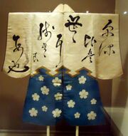| 23:50, 9 August 2016 | Sakura-jinbaori.jpg (file) | 144 KB | LordAmeth | A late 18th or early 19th century jinbaori, featuring sakura patterns, and an inscribed poem reading: After bursting into bloom Flowers soon scatter But their sweet-scented Fragrance will linger Generation after generation 桜出て 花は散る... | |