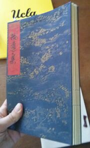 | 12:31, 11 August 2016 | Album-binding.jpg (file) | 60 KB | LordAmeth | A book bound as an album, in gajôsô (画帖装) binding. Photo by User:LordAmeth, 31 Aug 2015. | |