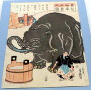 | 08:51, 2 April 2017 | Elephant-print.JPG (file) | 134 KB | LordAmeth | A woodblock print depicting the elephant which was on display at Ryôgoku in Edo in 1862-1863. On display at Edo-Tokyo Museum. Photo by User:LordAmeth, 1 April 2017. | |